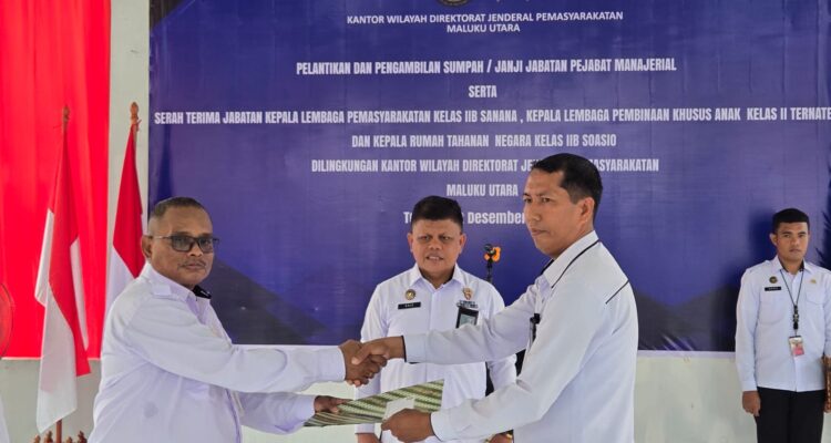 Kepala Rutan Kelas IIB Soasiu Berganti, David Lekatompessy Resmi Nakhoda Lapas Kelas IIB Sanana Berita, Daerah, Hukum, Ternate, Tidore|Desember 13, 2025oleh Redaksi Teras TERNATE – Kepala Rumah Tahanan Negara (Rutan) Kelas IIB Soasiu, David Lekatompessy,